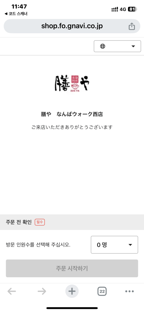주문은 QR코드로 스마트폰에서 주문가능하면 영문하고 한글이 있었어 어렵지 않게 주문할수 있다.