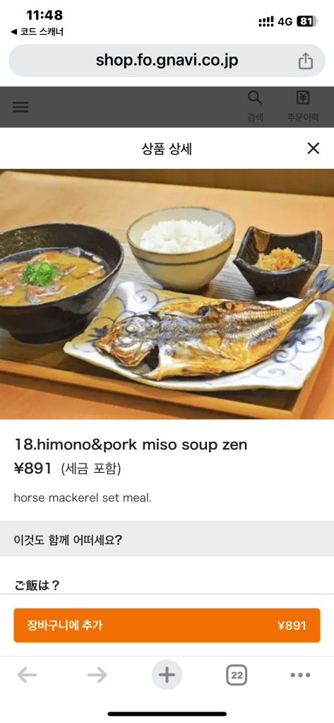 적은 전갱이 구이 干物 アジ焼き魚를 선택했습니다.